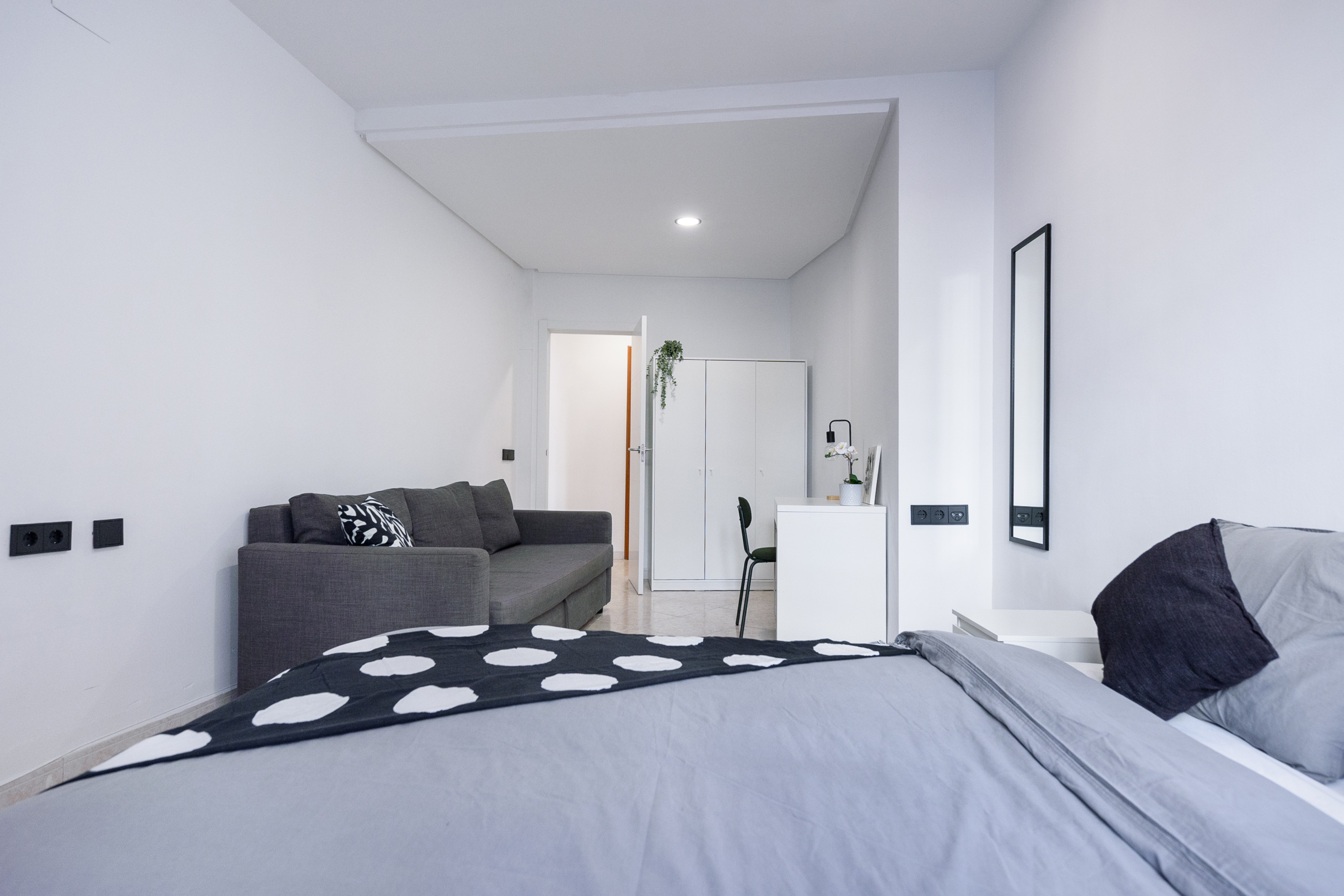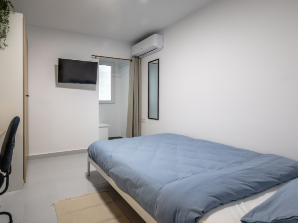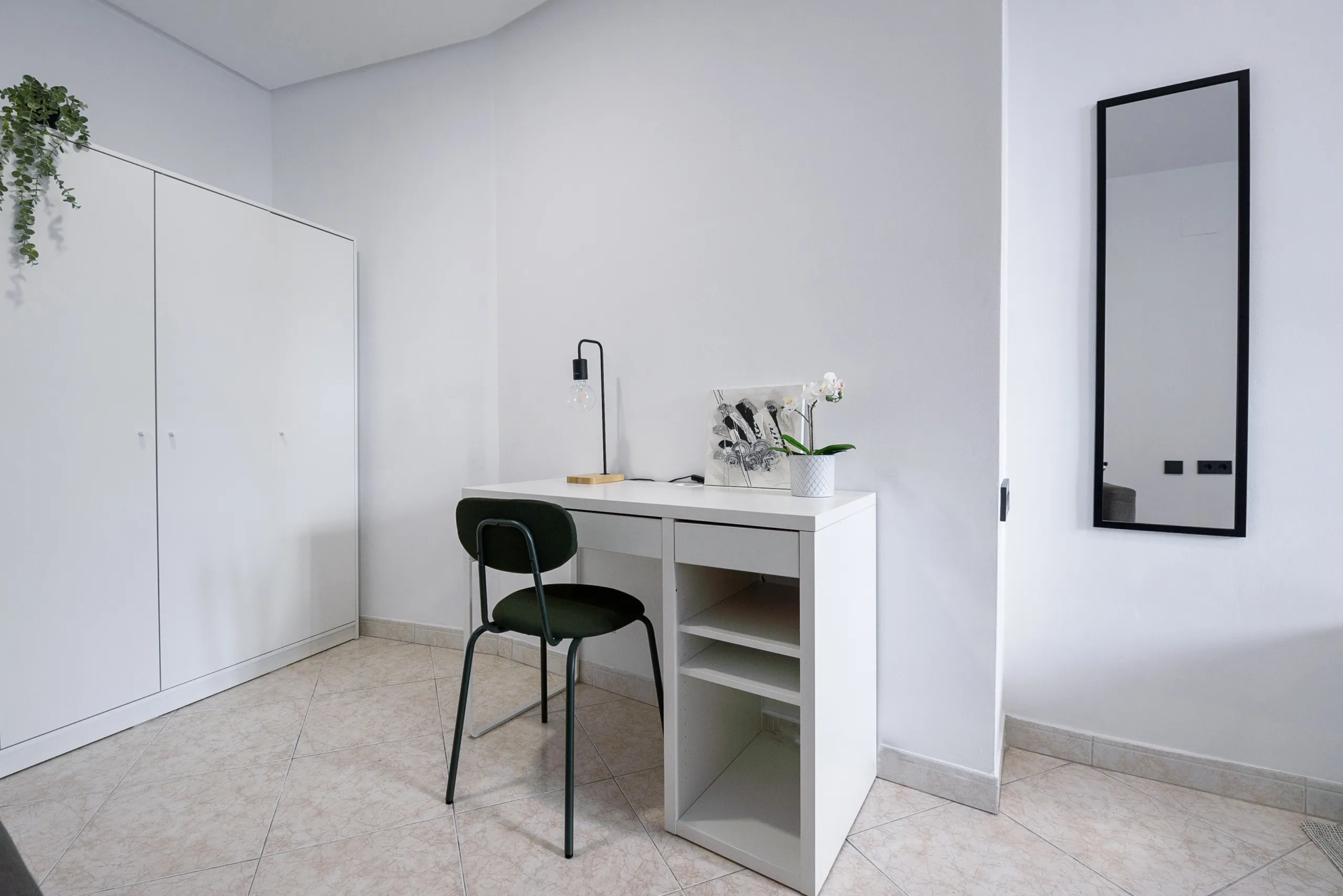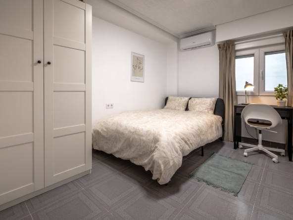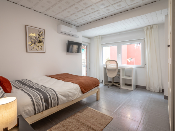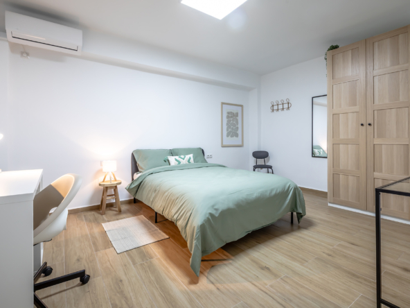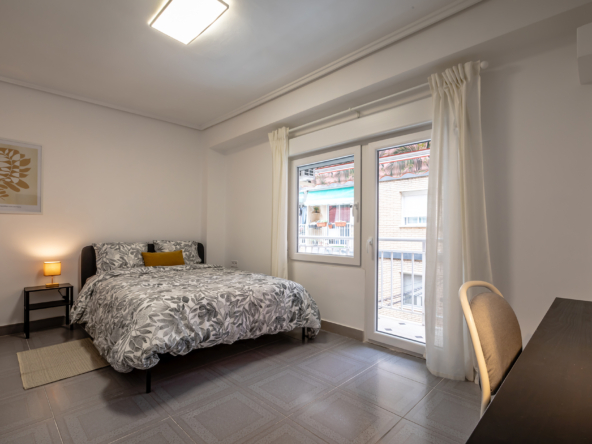 This 19m² room in a charming 4-bedroom apartment on Calle Baja 30 offers a bright, comfortable space with a private balcony perfect for enjoying your morning coffee or getting some fresh air. It comes fully furnished with a double bed, a large wardrobe, a desk and chair for studying or remote work, and even a comfortable sofa, providing a perfect spot to relax in your own private space.