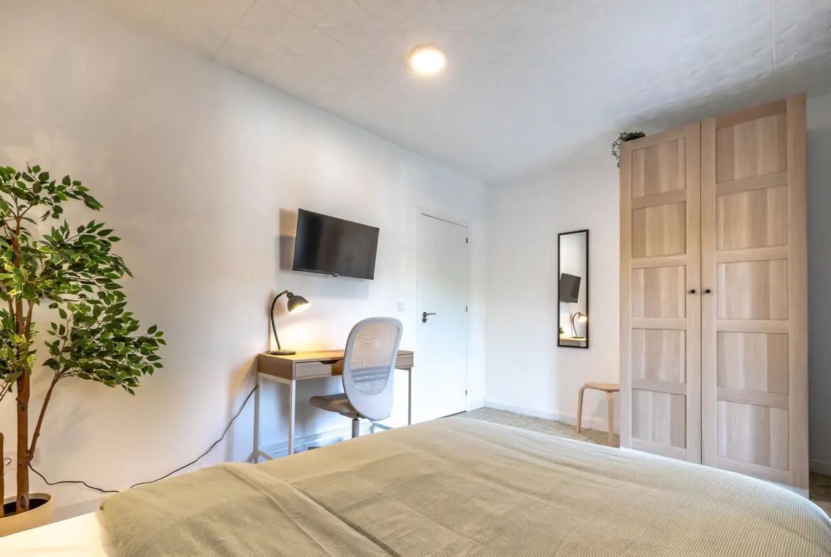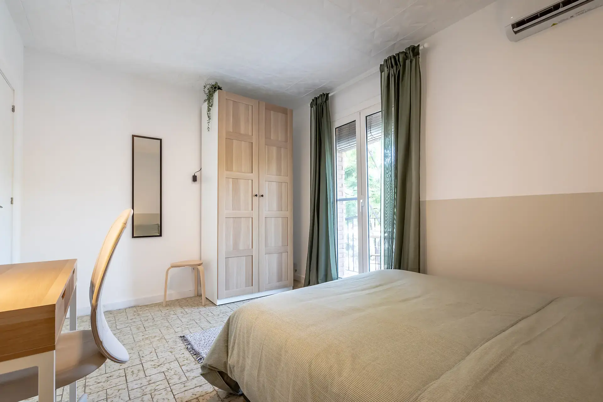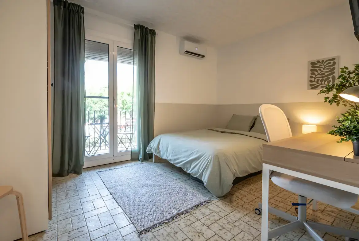 This 13m² room in a stylish 5-bedroom apartment on Calle Menorca 11 offers the perfect mix of comfort, privacy, and functionality. The room comes fully furnished with a comfortable double bed, a large wardrobe, a desk and chair for work or study, a personal TV, and best of all a private balcony where you can relax and enjoy the fresh air.