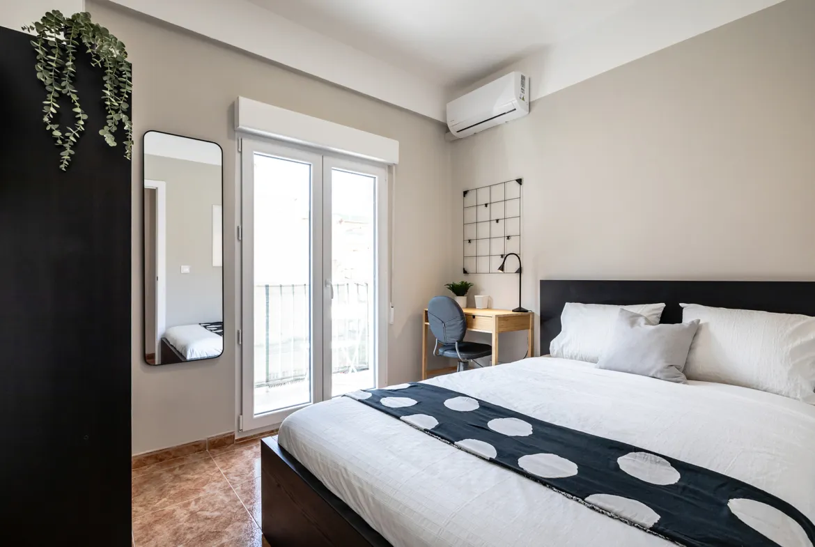 This 14m² room in a stylish 5-bedroom apartment on Calle Mendizabal 48 offers the perfect mix of comfort, privacy, and functionality. The room comes fully furnished with a comfortable double bed, a large wardrobe, a desk and chair for work or study, a personal TV, and best of all a private balcony where you can relax and enjoy the fresh air.