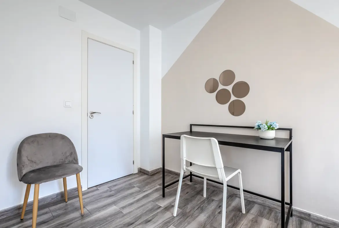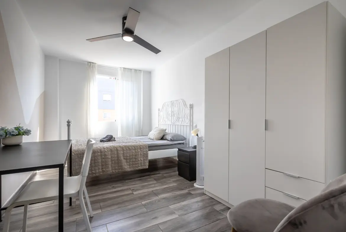This 13m² room in a recently renovated and spacious 5-bedroom apartment on Calle Musico Martin Soler 1 offers a comfortable and efficient living space, perfect for students, young professionals, or digital nomads. The room is fully furnished with a double bed, a desk and chair for studying or remote work, a wardrobe, ceiling ventilation and air-conditioning.