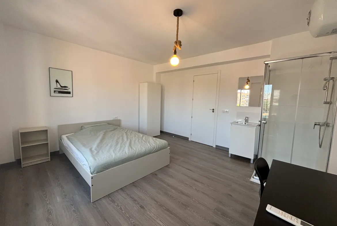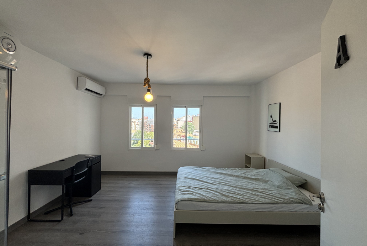 This spacious 18m² room in a modern 5-bedroom apartment on Avenida Primado Reig 19 offers a bright, comfortable, and private living space ideal for students or young professionals. The room features a double bed, a private bathroom with sink and shower, a desk and chair for studying or remote work, and airconditioning to keep you cool all year round.