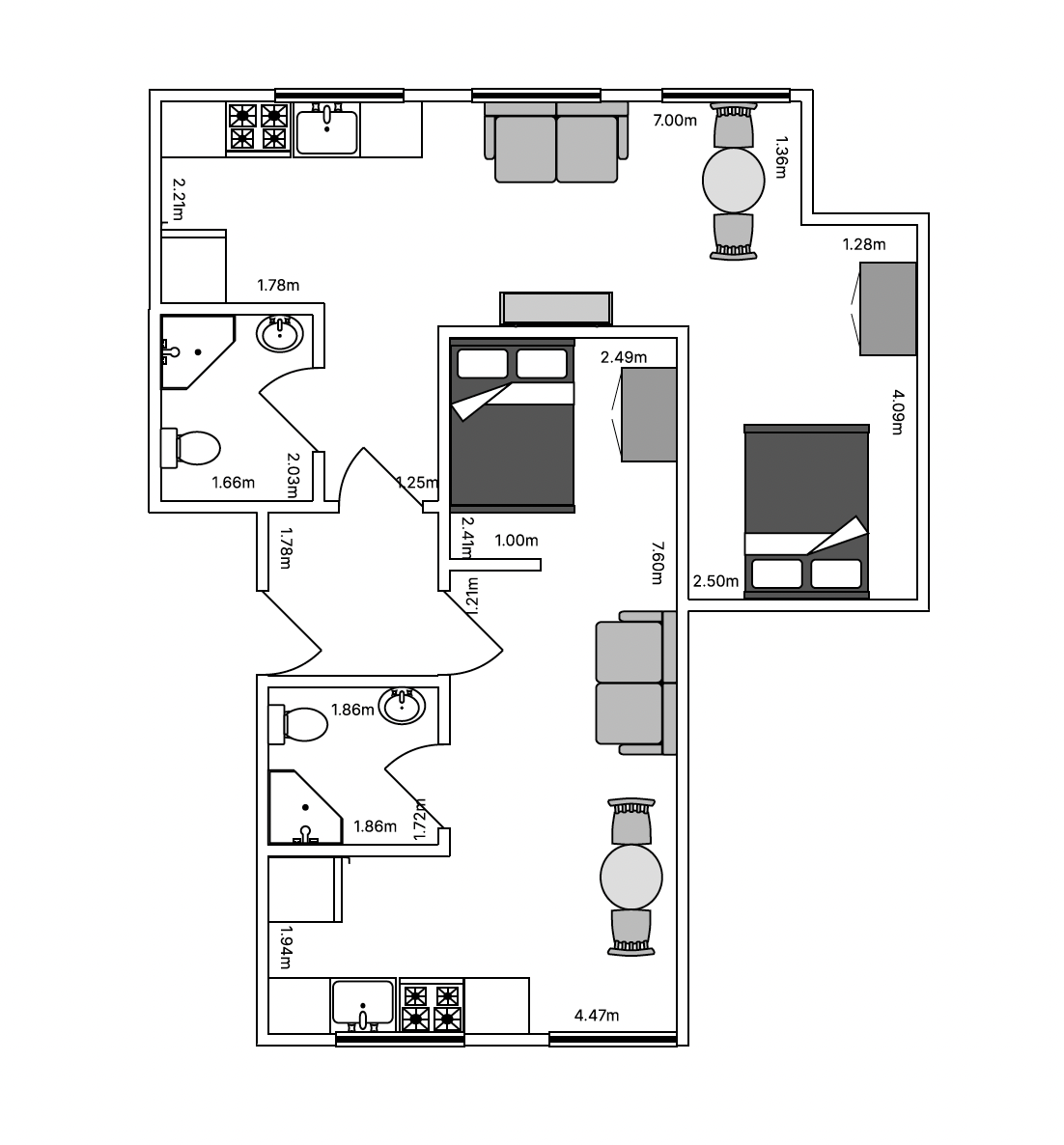 Open-Plan Living – A well-designed space combining the sleeping, living, and kitchen areas efficiently.